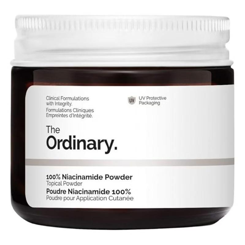 Boost your skincare routine with The Ordinary 100% Niacinamide Topical Powder, a highly concentrated niacinamide powder designed to target dullness, uneven skin tone, and enlarged pores. This pure, versatile powder allows you to customize your skincare by mixing it with your favorite serums or moisturizers, delivering a potent dose of niacinamide directly to your skin. Renowned for its brightening, oil-regulating, and anti-inflammatory properties, niacinamide helps reduce the appearance of blemishes, redness, and enlarged pores, revealing a smoother, more luminous complexion. Easy to incorporate into your daily routine, this 20g powder is perfect for those seeking a personalized and effective skincare booster.